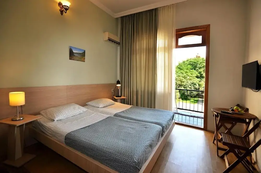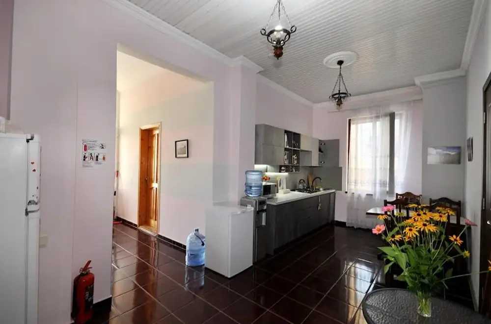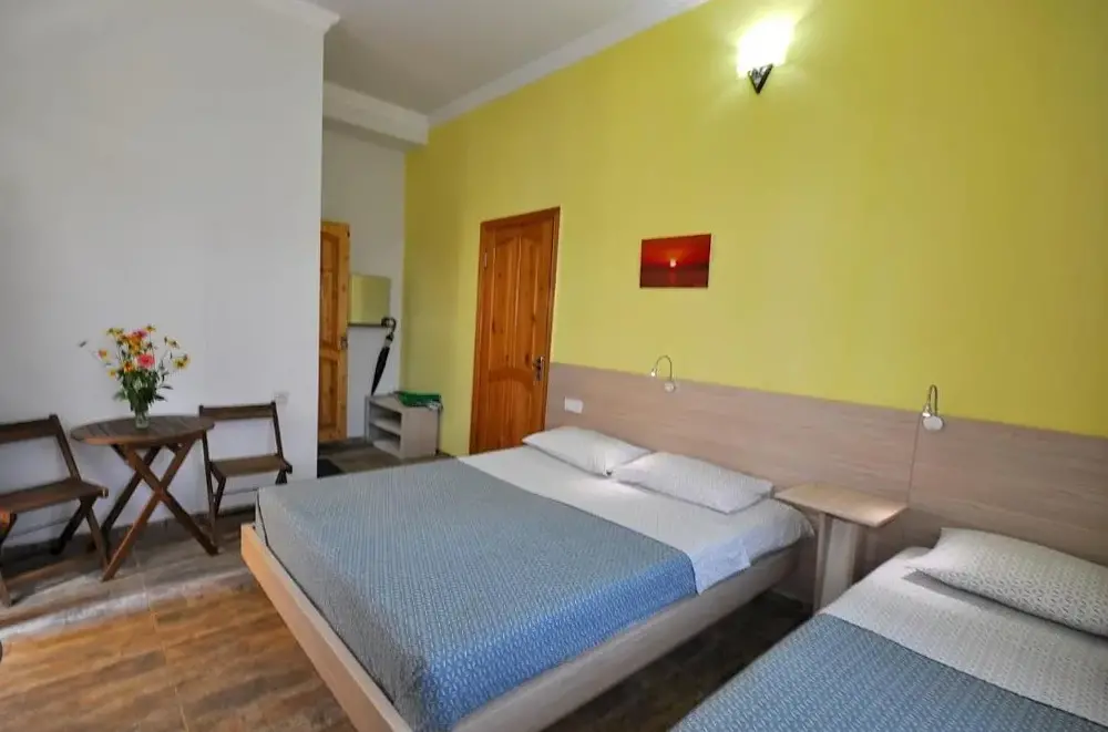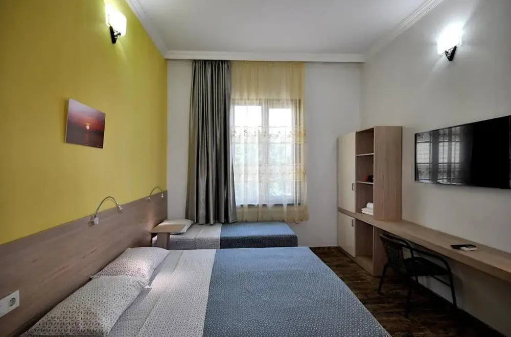 The location is successful, a small park across the road, with access to the sea. Nearby there are a lot of cafes, restaurants for eating. Shops and shops with foods, drinks and fruits. The exchange of currency is also nearby, if you need to urgently change the money, and so went to the bank in exchanger, the exchange rate was profitable there. Everything necessary nearby. The apartments were inside the courtyard, for silence, they were looking for such, as noisily from music and people in the evening. We had a kitchen on the floor with everything necessary, it is very super when with children, especially since they are used to home food. In general, we had everything for a comfortable residence. Separately, I want to note the hostile attitude of the owner, upon arrival, we brought fruits, mineral water and lemonade into the room. It is very pleasant on my next trip, I am wronging to choose a proven option.